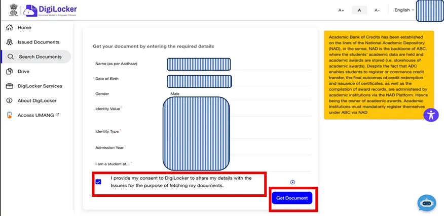 - Step 12: Click on checkbox to provide consent and click on Get Document to get APAAR ID.