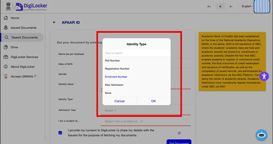 Steps to Create APAAR ID via DigiLocker :